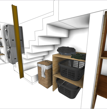 Transformation d'un espace de stockage en souplexe avec chambre, salle de bain et buanderie