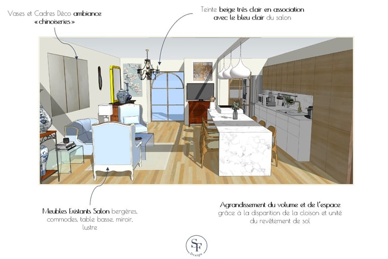 Appartement Haussmannien n'ayant subi aucune transformation depuis plus de 50 ans, à entièrement rénover et moderniser. Redistribution des espaces en créant une pièce de vie avec cuisine ouverte, une salle de bain avec accès indépendant, une suite parentale avec coin bibliothèque et coin bureau. Les marqueurs de l'Haussmannien ont été respectés et conservés : corniches, rosaces, parquets, cheminées,